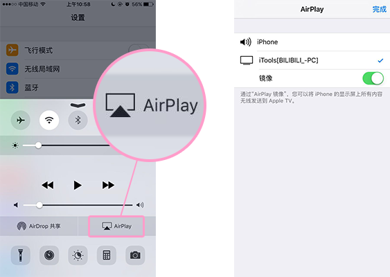 ③上划手机状态栏点击Airplay,点击后选择对应Airplay镜像,电脑就会出现手机画面啦!