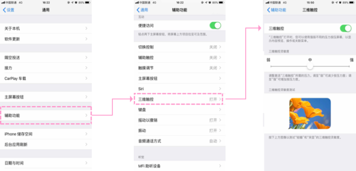 开启方式:设置-通用-辅助功能-三维触控