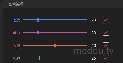 基础美颜支持:磨皮、美白、大眼、瘦脸