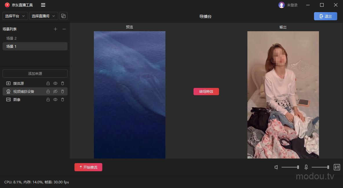 因为京东直播工具采用的是OBS内核,当你在京东直播工具中配置好场景后,你打开OBS,你会惊奇的发现,场景界面居然是一样的;