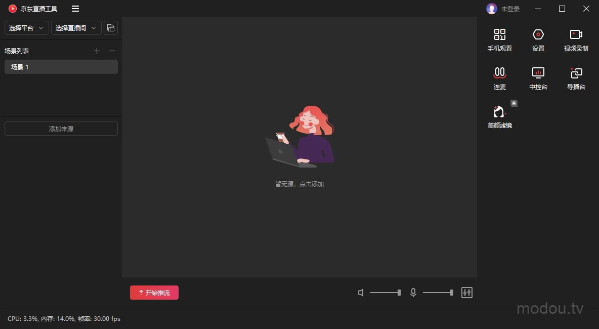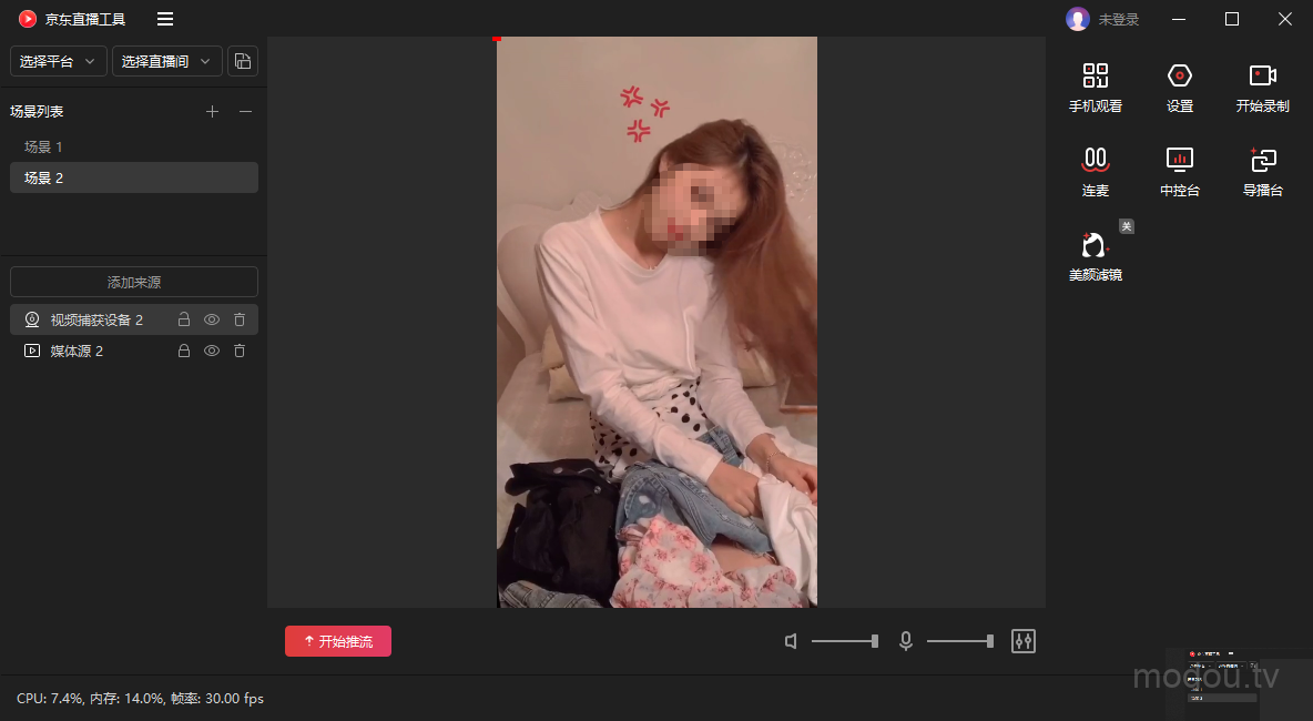 因为有带美颜功能,所以对美颜有需求的用户是个不错的选择!操作简单,跟OBS一样,适合电商、游戏等直播;