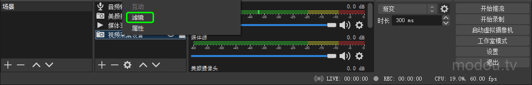 1、在OBS来源下,找到要添加滤镜的视频源,鼠标右键,选择“滤镜”