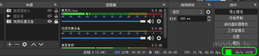 1、首先打开直播OBS,在OBS中配置好你要直播的内容