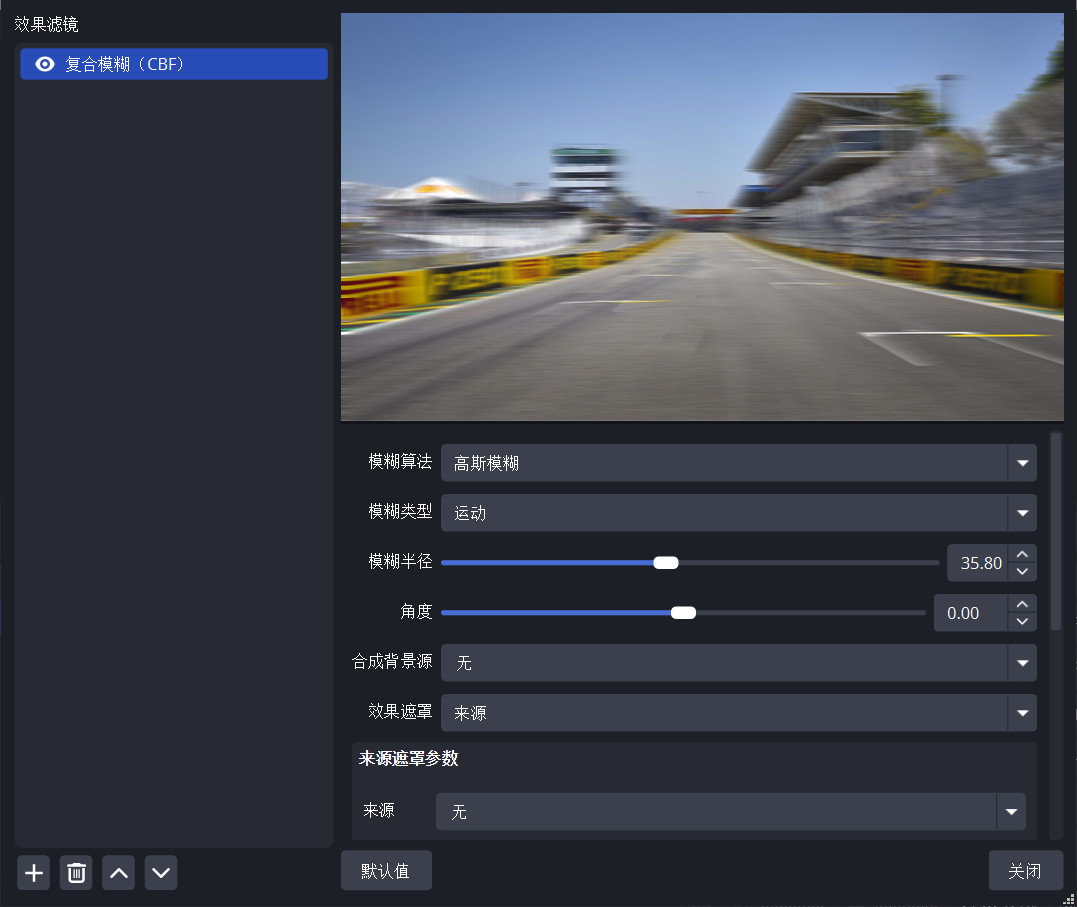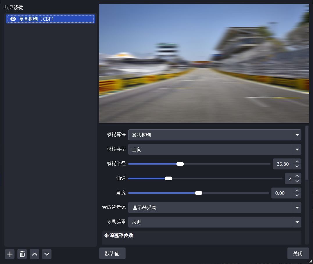 使用另一个OBS源或场景作为模糊的掩码。只需选择您要使用的源或场景,然后指定是否要使用源的alpha通道、灰度值、亮度或红色、绿色、蓝色和alpha通道的自定义组合来掩盖模糊效果。您还可以将生成的掩码乘以一个值。如果您有半透明的光源,但希望半透明光源背后的一切都完全模糊,乘法值就很方便。