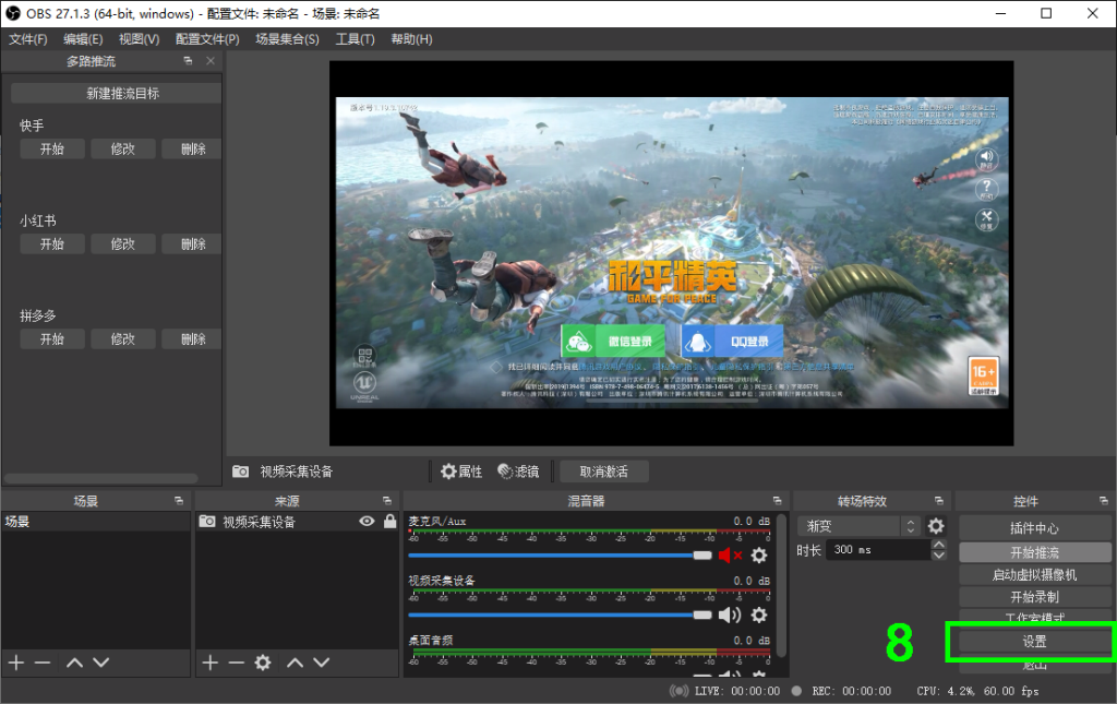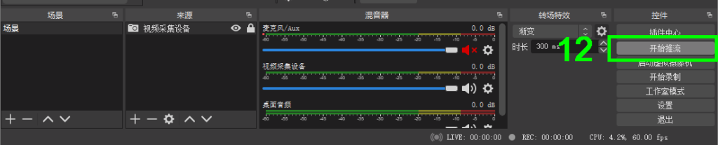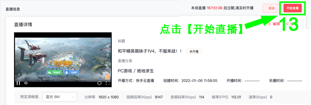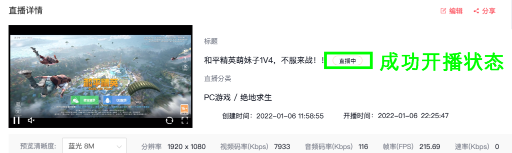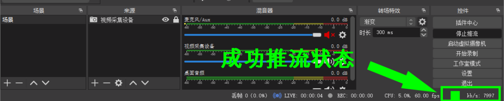 成功推流后,右下角会有码率变化,观众暂时还看不到你的直播画面;