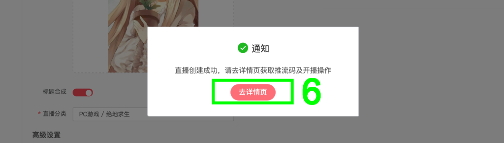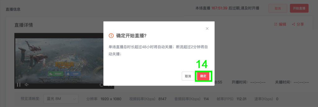 点击「开始直播」按钮后,会弹出提示框,在提示框中点击确定