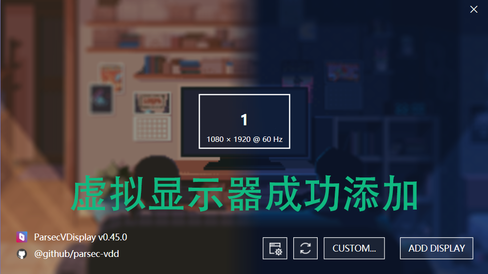 2、打开Parsec,将画面移动到Parsec中,注意:画面一定要全屏(窗口最大化),下图是Parsec已添加好的虚拟屏页面截图