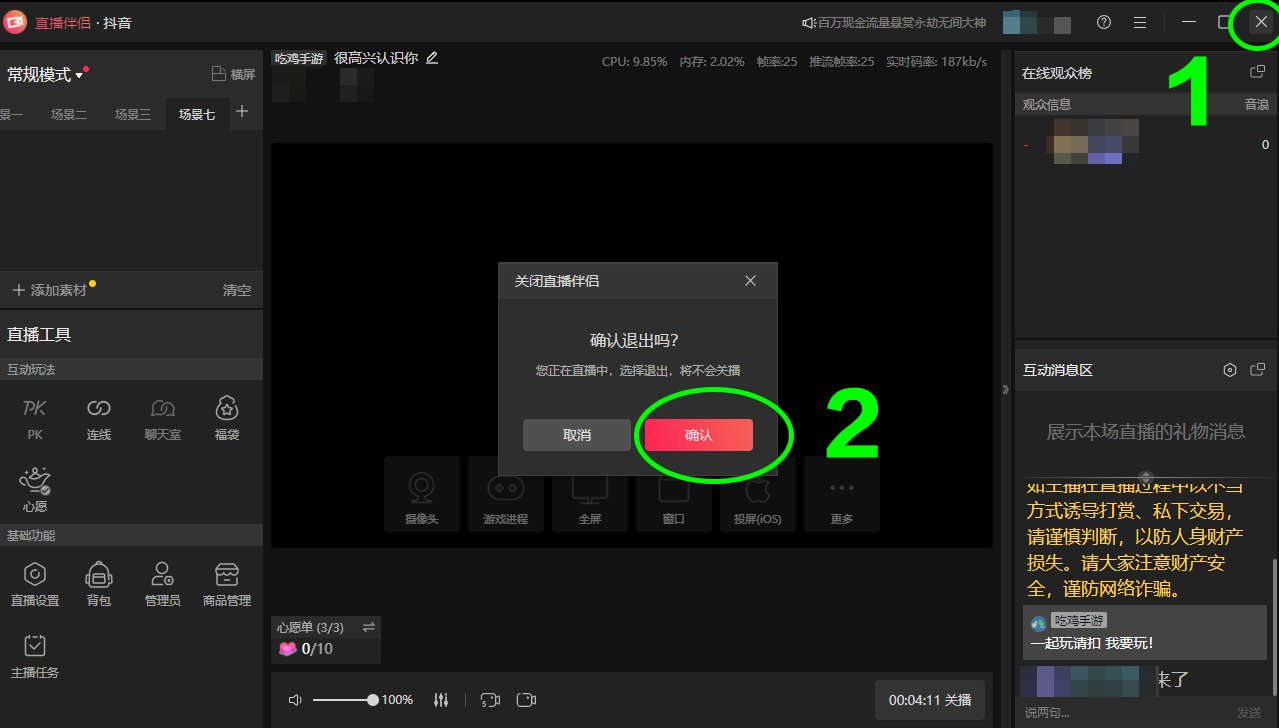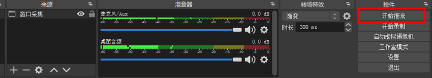 第八步、关闭抖音直播伴侣,在OBS中点击开始推流即可实现推流;