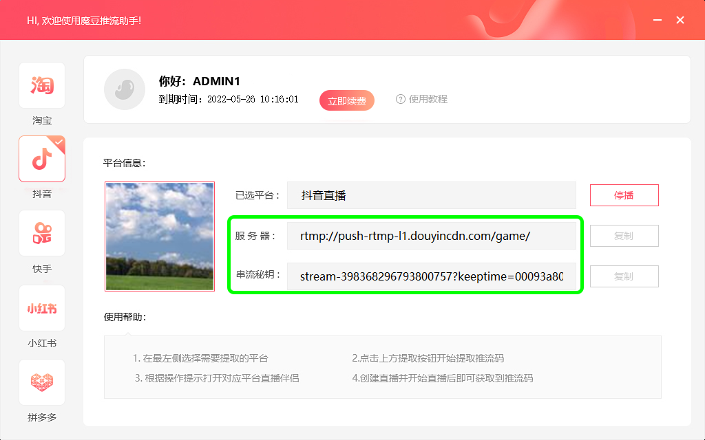 该软件因开发者没有更新,暂时无法使用,建议使用魔豆推流助手,下载地址:https://www.modou.tv/?p=2134