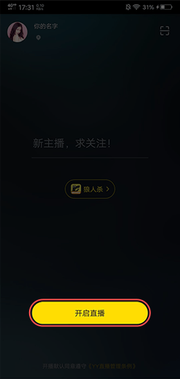 ②打开手游助手,登陆YY账号,选择开播的游戏品类,点击“开启直播”,则可开始直播。