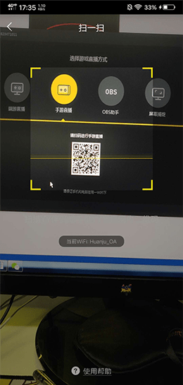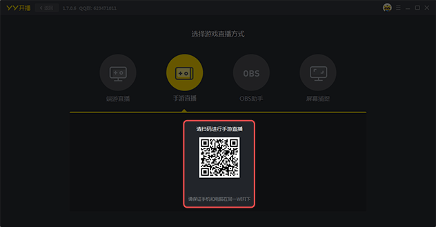 ②点击“手游直播”,看到下方显示的二维码: