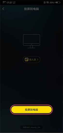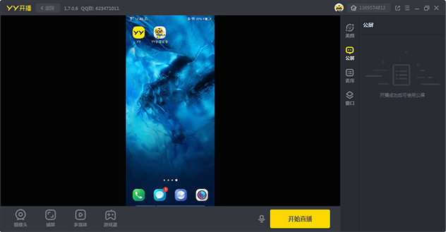 ④扫描成功后,点击“投屏到电脑”按钮,将手机的画面投屏到YY开播上: